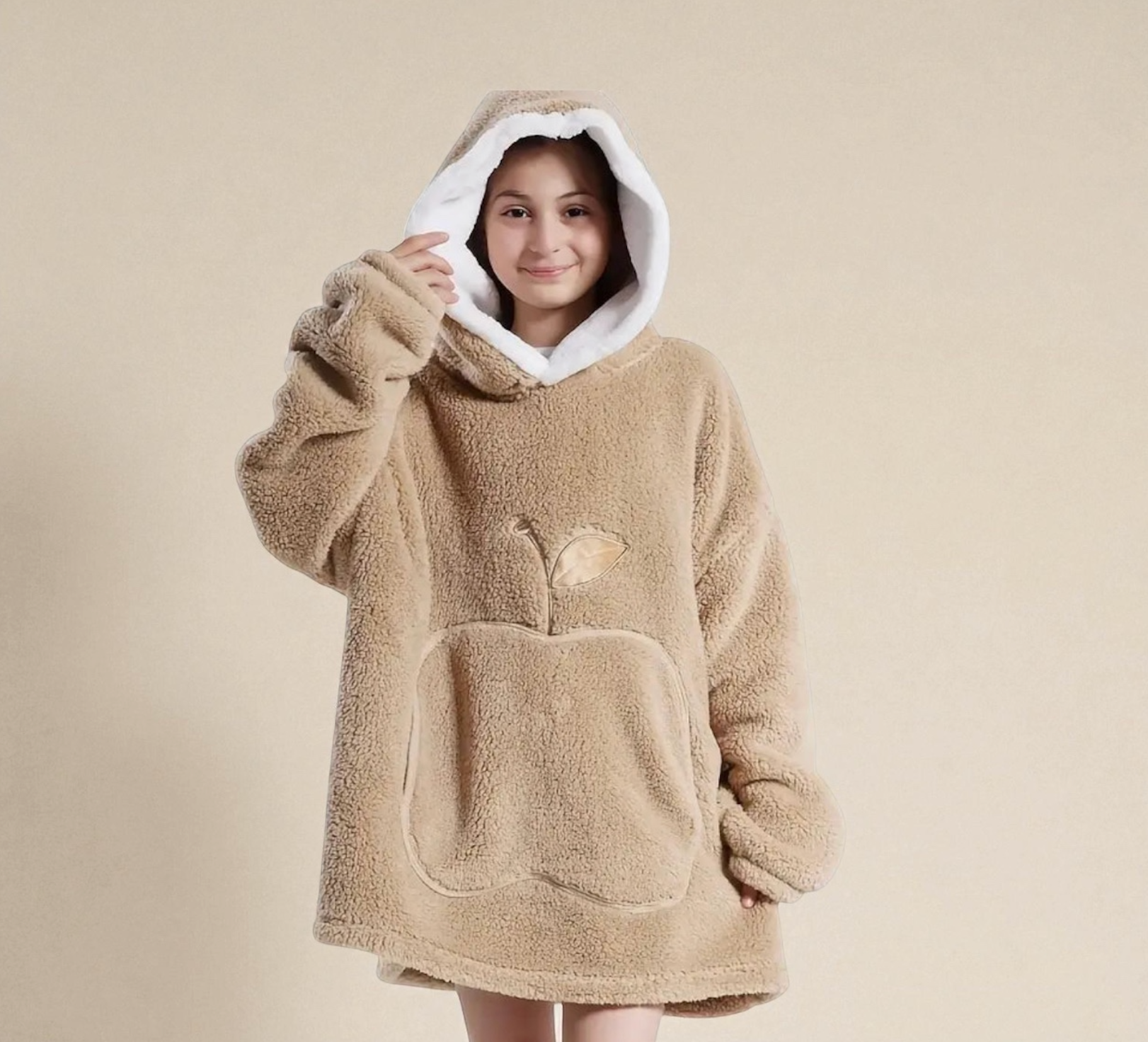 Petit Ourson, c’est un plaid à capuche tout doux avec des oreilles d’ourson, fait pour les enfants.